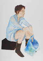 Erschöpfung. Für mich bewegen sie sich zwischen Dürer, Rodin und drei trivialen Tüten in ihren Händen.